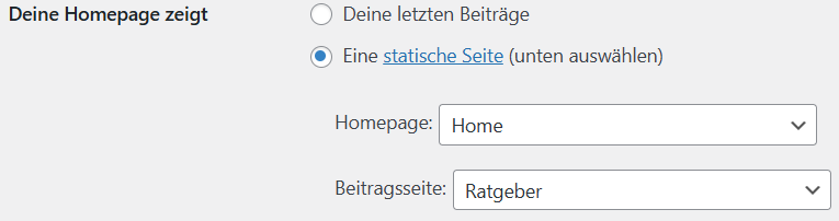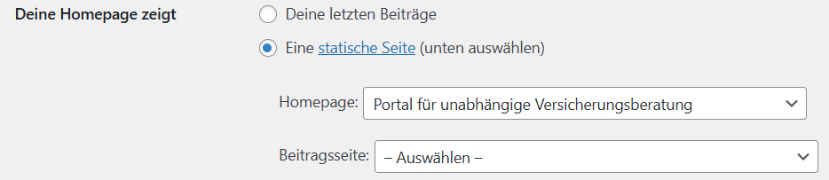 Im BackEnd von WordPress kann in den Einstellungen->Lesen festgelegt werden, welche Seite als Zentrum für die Blog Artikel zu verwenden ist. Im folgenden Bild sehen wir, dass für Beitragsseiten keine Zielseite angegeben ist. Die Blogartikel sind also nicht an einer zentralen Stelle zu finden.